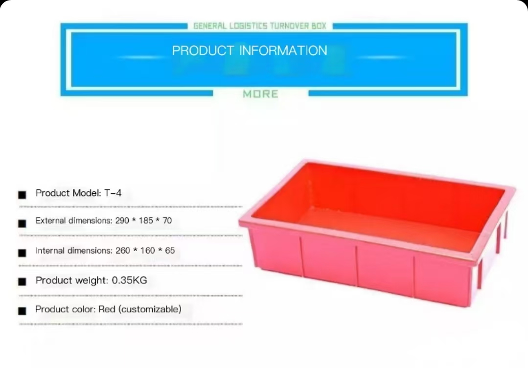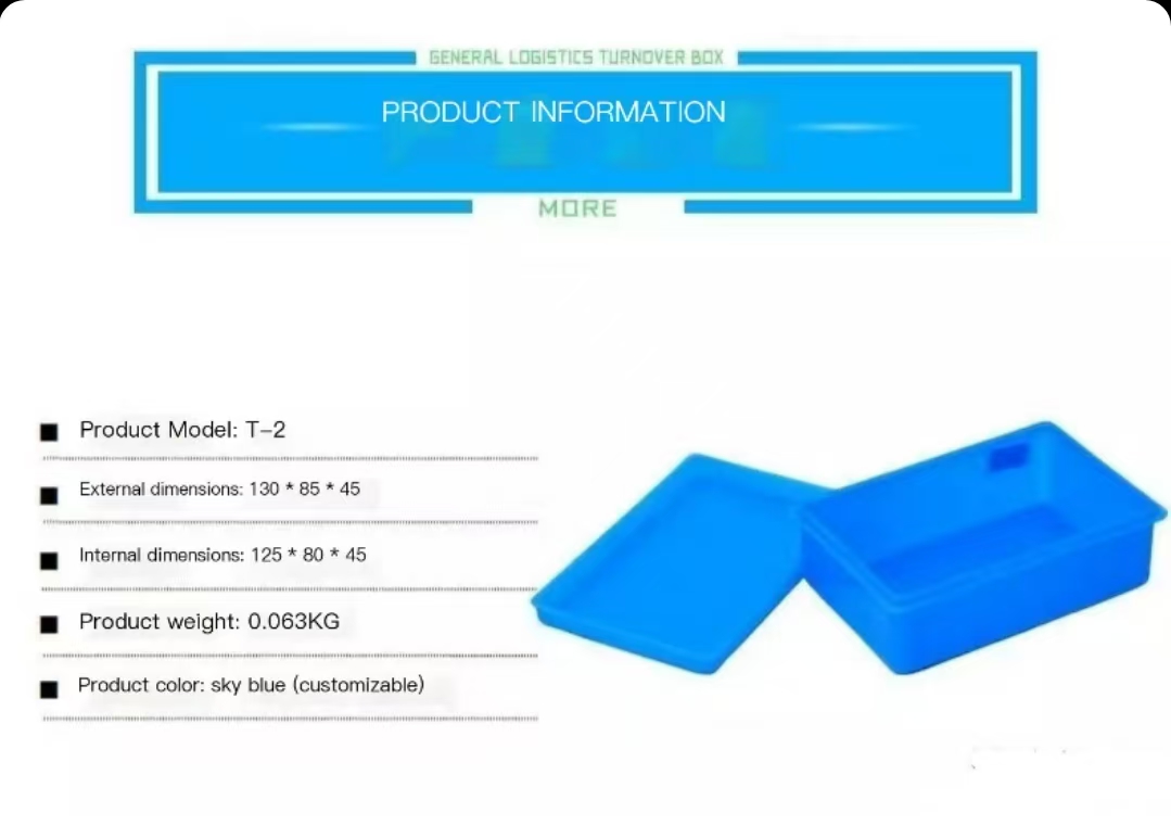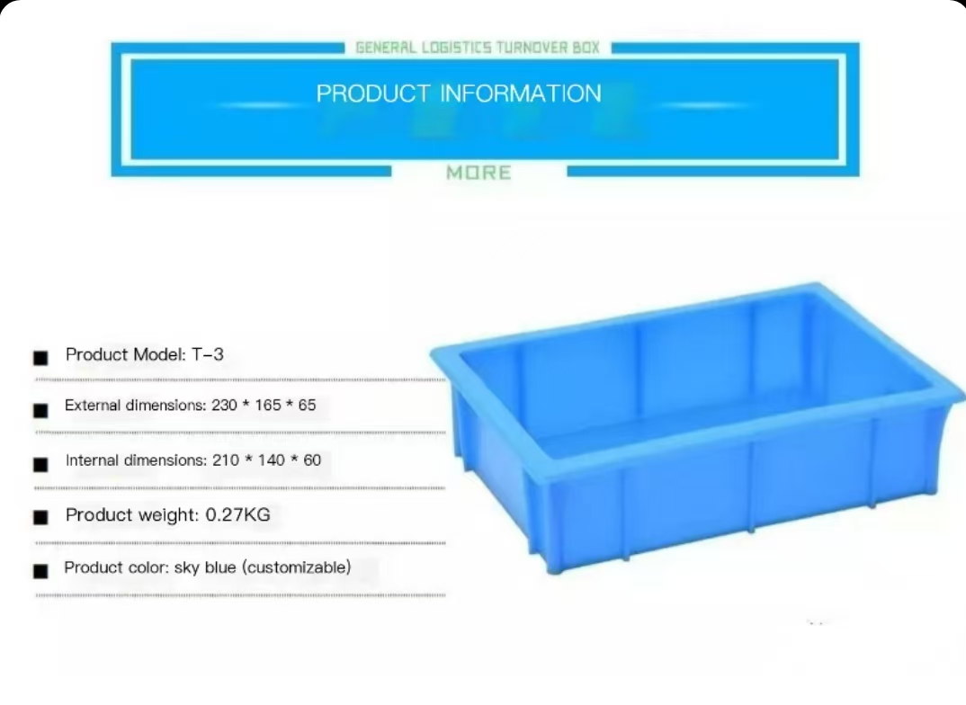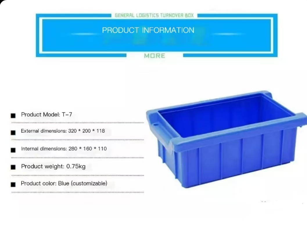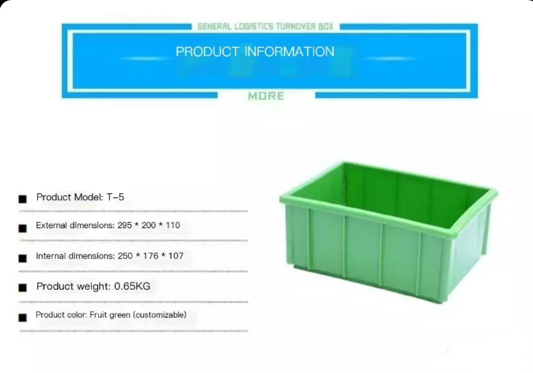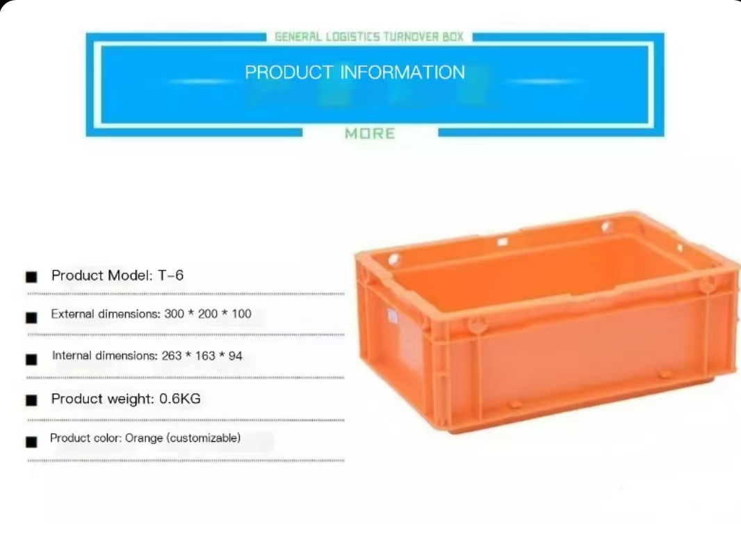 T series plastic box belongs to the general plastic box, the inner cavity is completely space, there are many products, complete specifications, suitable for all walks of life, to achieve a wide range of versatility, strong standard, convenient loading and unloading, convenient turnover, is the ideal choice of logistics equipment. And according to the needs of users to configure the logo rack, jet printing words, customized colors, flexible application.